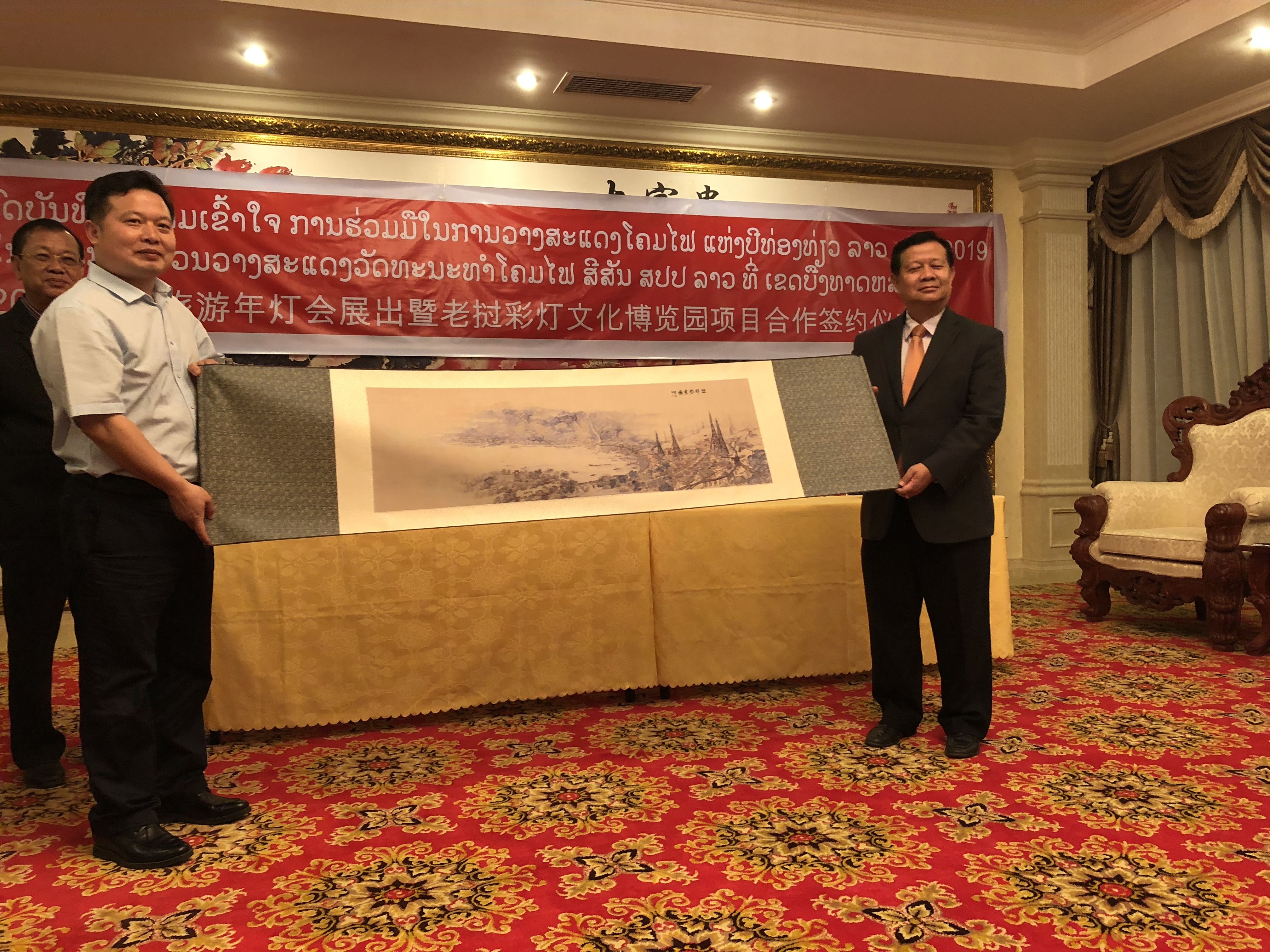 12月20日,四川省自贡市文化广电新闻出版局与老挝塔銮湖经济特区在老挝首都万象签订《2019年中老旅游年项目合作框架协议》。会上,四川省自贡市文化旅游投资开发有限公司、四川省华业集团与老挝塔銮湖经济特区签订了2019年老挝灯会及《老挝彩灯民俗文化博览园》投资合作框架协议。